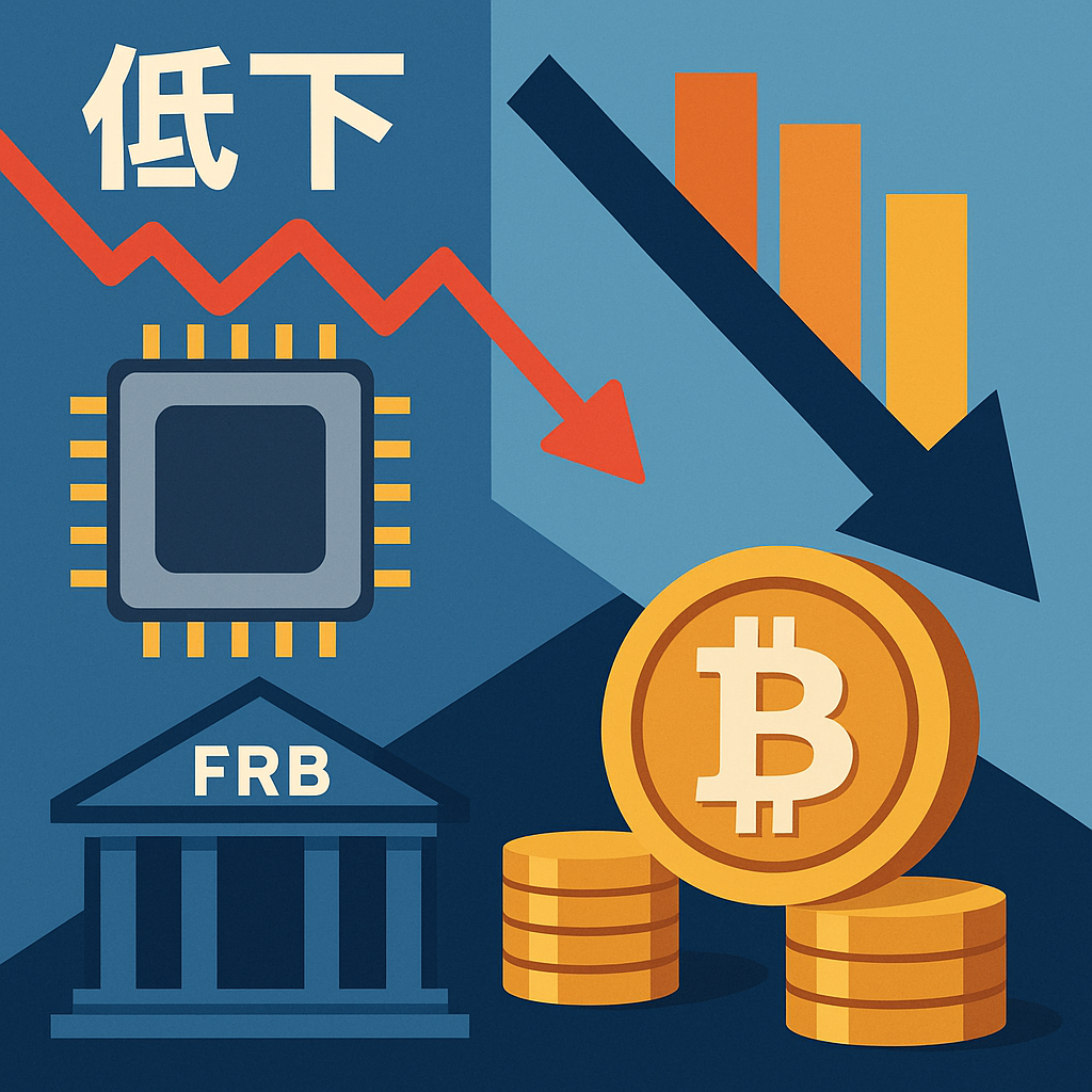 アメリカの半導体大手ブロードコムの株価が10%下落し、同時に連邦準備銀行が積極的な利下げを示唆している。この相反する動きが仮想通貨市場にも大きな影響を与えている。